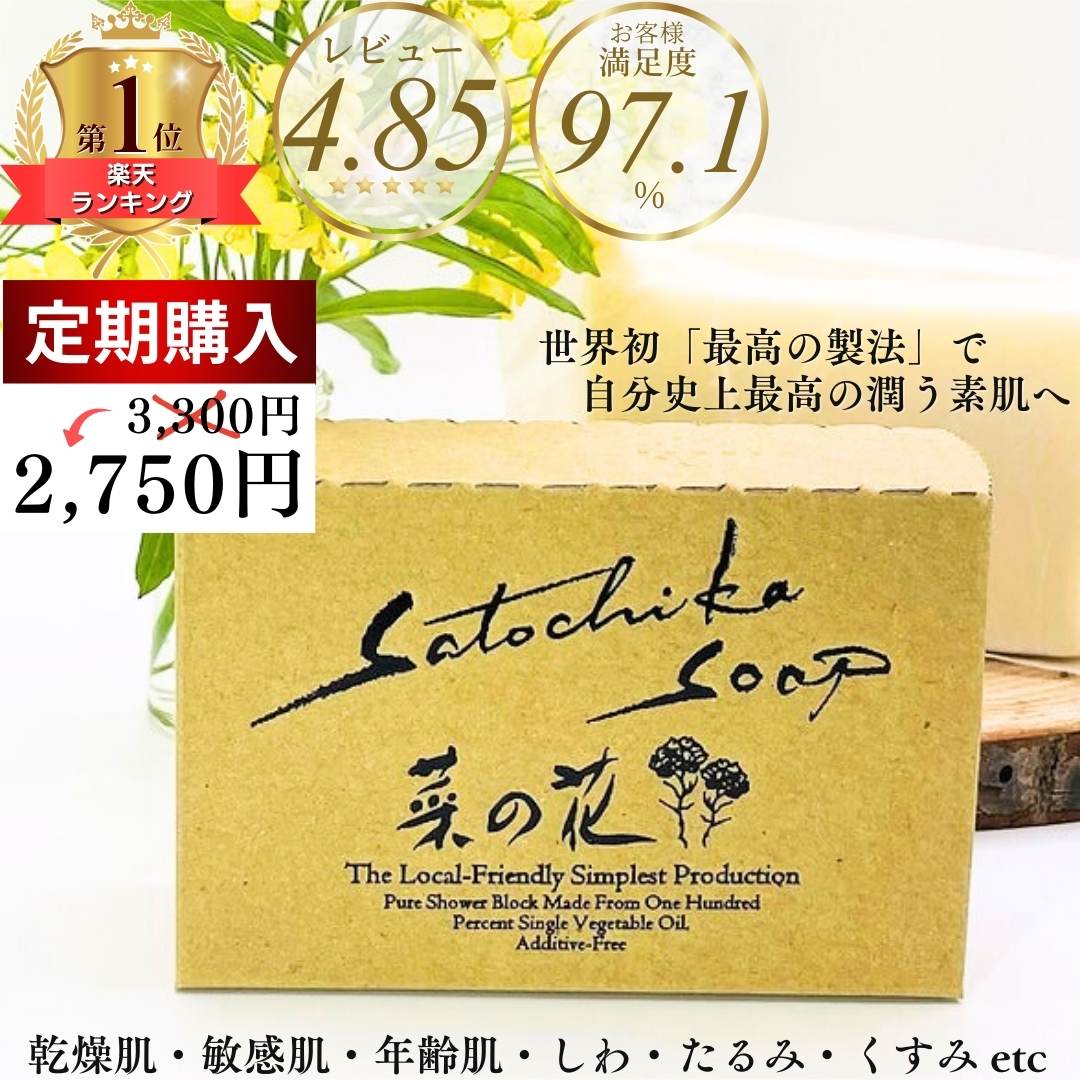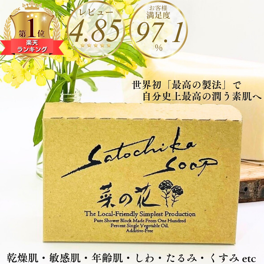 国産菜種油を原料油脂として100%使用した純国産の化粧石鹸(無香料)です。